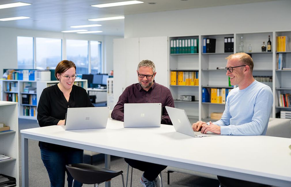 Wir sind ein Team von 50 Mitarbeiterinnen und Mitarbeitern aus diversen Spezialgebieten. Wir sind stolz auf unser breites Fachwissen und unsere kreativen Ideen, die wir täglich in die Projektarbeit einfliessen lassen. Ebenso schätzen wir unsere kollegiale Kultur, die sich nicht zuletzt durch Optimismus und Humor auszeichnet.